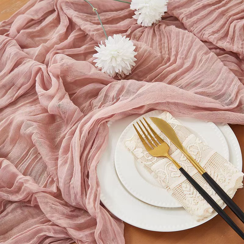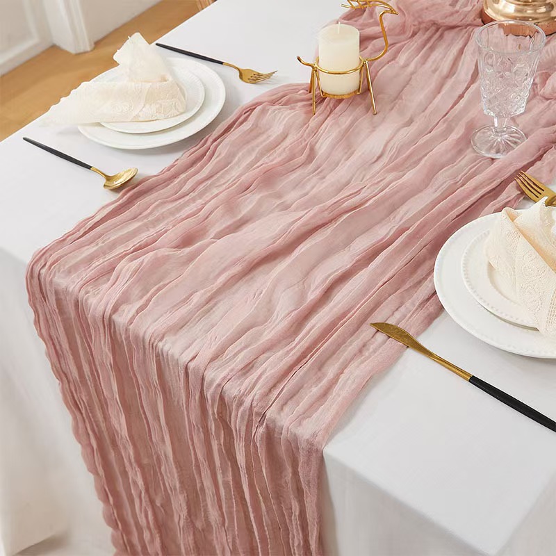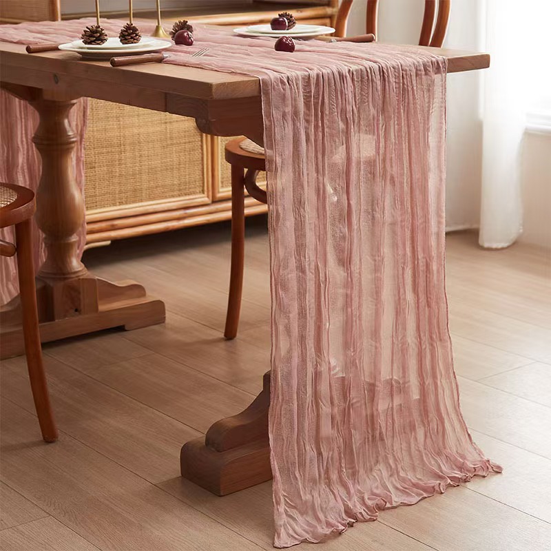 The European-style wedding cheese crepe tablecloth is a dining table aesthetic piece that blends decorative artistry with practical functionality. Its distinctive crepe design, European-inspired style, and high adaptability make it an ideal choice for creating a sophisticated banquet atmosphere. It not only protects the tabletop but also elevates the visual quality of events through its intricate details, perfectly catering to users who value ceremonial elegance.